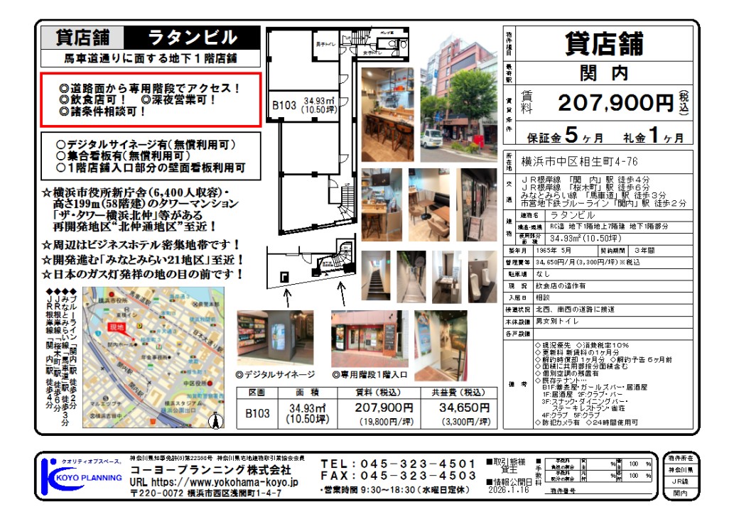 貴重な横浜駅1分の物件や、人気の南幸エリアの店舗物件でテナント募集中です。