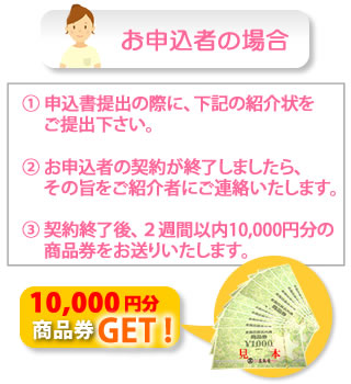 当社仲介でご入居が決まった際、ご紹介いただいた方に10,000円分商品券プレゼント !
