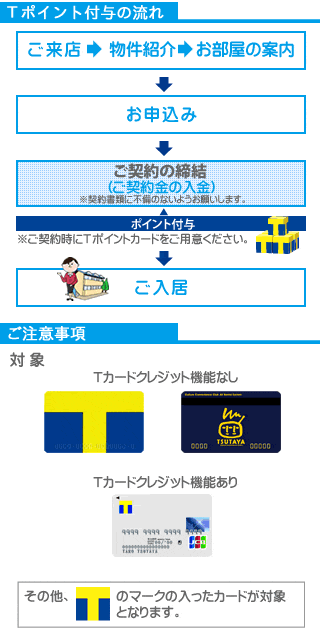 Tカードのご提示で仲介手数料100円ごとに1ポイント貯まります! ※仲介手数料54,000円(税込)の場合、540ポイントが貯まります。